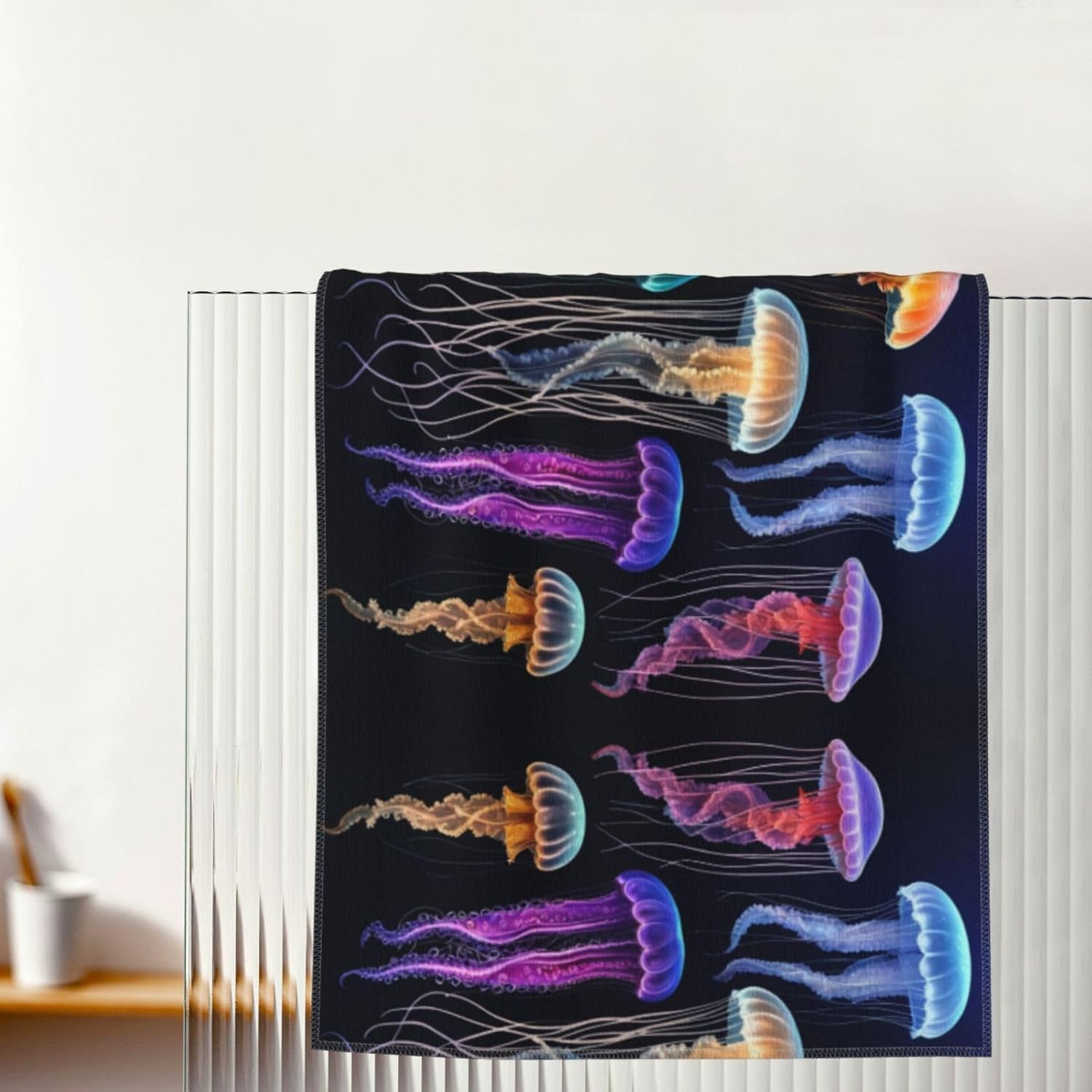Crafted from premium polyester, the Jellyfish ocean print Bath towels offer an indulgent touch, with their plush and gentle texture embracing your skin as you dry off after a long day. The high-quality material ensures excellent water absorption, making them highly practical for everyday use. Their fade-resistant nature means the colors remain vibrant even after multiple washes. With two size options, 12*24 inches and 13.8*27.5 inches, these Jellyfish ocean print Bath towels can accommodate various preferences. The breathable fabric allows air to circulate, preventing that stuffy feeling and providing a refreshing experience.